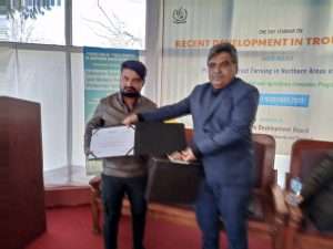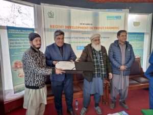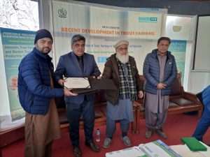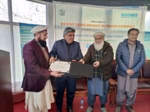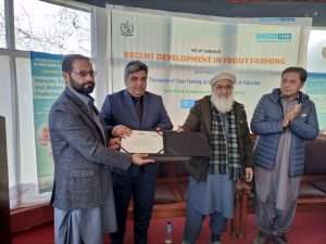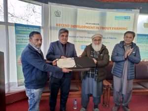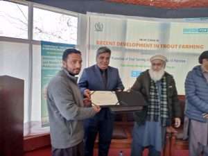 of fingerling production 10000-15000 while it can rare 1000 brooders. With the help of this project, maintenance of Salkhala trout hatchery after its renovation has been done by providing gradually feed throughout the year, medicines and chemicals in time of disease outburst, fulfilling hatchery breeding demands, in time stocking for next year increase in production rate of trout. Skilled staff through training opportunities lessen mortality rates in hatcheries it ultimately led to difference in basic production level. This year of trout seed production in kutton hatchery accounts for 25000eggs and 15000fry.