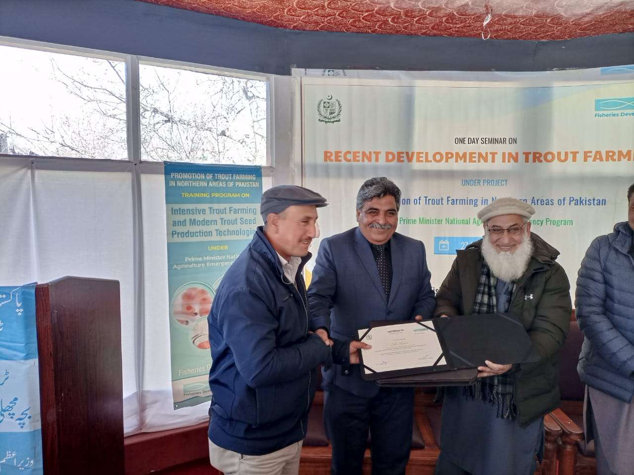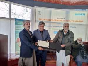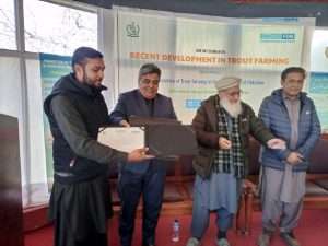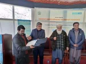 Trout culture is becoming a popular mode of earning in the mountainous regions of Pakistan. The first trout hatchery of Indian Sub-continent was established in 1928 at Shino-Kaghan, followed by couple of more hatcheries in KPK and GB during the 1960s. Subsequently, many trout hatcheries were established in the private sector for commercial sale of fry and fingerlings and for in-house consumption. Trout fish is mainly cultured in flow-through concrete raceways constructed at places where sufficient water is available throughout the year. Despite suitable agro-climatic conditions trout production in Pakistan has never been close to the regional countries with similar resources e.g. Iran and Turkey. The small volume production is mainly be consumed by tourists at the farm gate. Trout culture however, witnessed a turn-around during 2012-13 when the first local extruded floating feed was produced. This led to decrease in mortality, short culture period, and predictable harvest and secure returns for the farmers. From couple of dozen trout farms at the close of first decade of millennium to the establishment of at least couple of hundreds by the end of 2020s testifies to the potential of trout production in Pakistan. The proactive role of government in creating production infrastructure recently and historically in the breeding segments has been noteworthy. The sustainable growth in trout production needs continuous de-constraining of the inputs supply and infrastructure and adoption of modern technologies in breeding and rearing, biosafety and disease control and the capacity building of extension staff and the farmers.